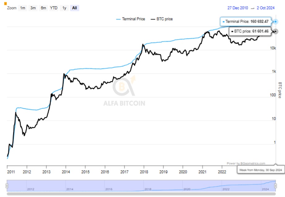 - Reconocer Cambios de Tendencia: Cuando Bitcoin alcanza su precio terminado, suele comenzar una fase de corrección o incluso un mercado bajista. Los traders que siguen esta métrica pueden ajustar sus estrategias, como cambiar posiciones largas a cortas o vender sus holdings para recomprar a precios más bajos.